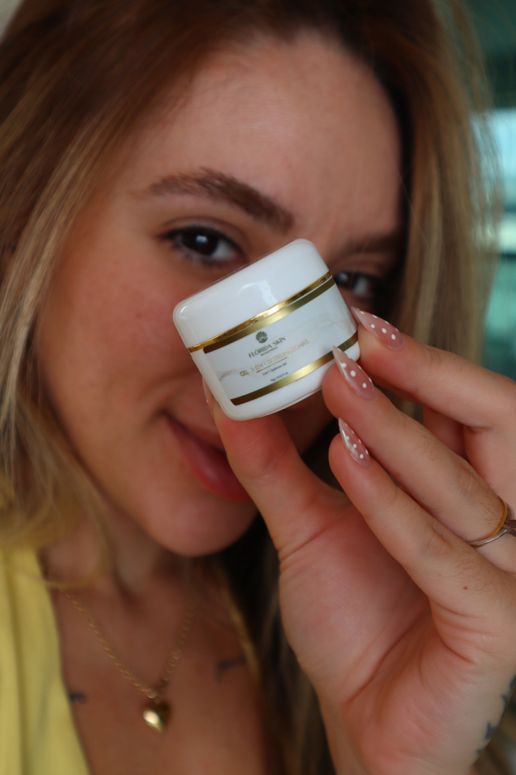 Aplique o PDRN sérum para auxílio com manchas e regeneração celular ou Sérum Glow Up para manter uma pele ainda mais jovem e cheia de vida